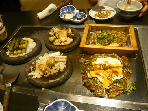 Here’s the obligatory foodie shot! Teppanyaki with stone dishes full of asparagus, mushrooms, yakisoba and okonomiyaki… yum! It was a good way to start off what will no doubt be a fairly food-focused holiday!