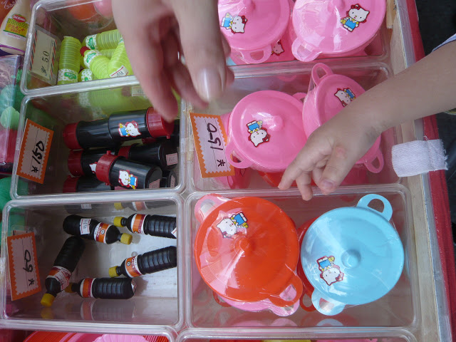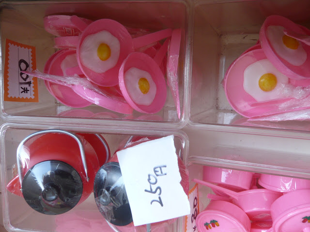 Just the kind of things little kids need for playing restaurants! They’re obviously aimed at the Japanese market because among the foods are bamboo shoots (top right in the photo below this).