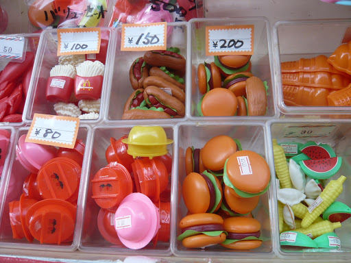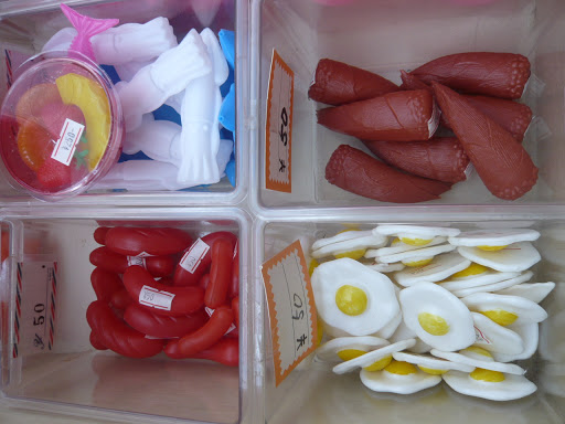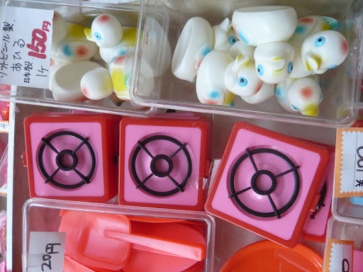 Just the kind of things little kids need for playing restaurants! They’re obviously aimed at the Japanese market because among the foods are bamboo shoots (top right in the photo below this).