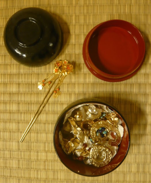 Stacking bento box, ¥300, with earrings I found for ¥100 each, and a hair pin for ¥200.