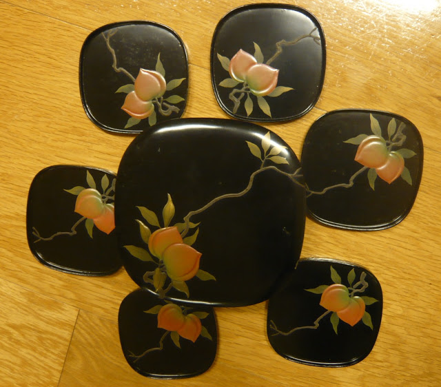 Set of lacquerware coasters with peach design, ¥500. A bit cracked and a bit grotty, but that’s sort of how I like my lacquerware!