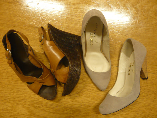 Brand new rattan wedges with leather uppers, made in Italy… and barely worn suede shoes with cork heels… both of these pairs of shoes were ¥500 each! I’m thinking I might do something to the suede ones as this pale buffy shade isn’t really “me”. Ideas?