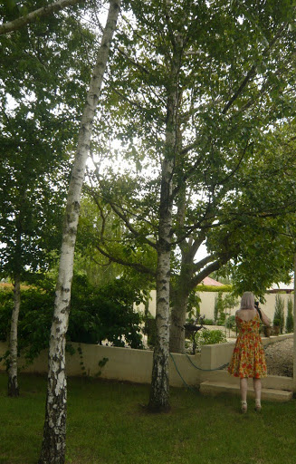 I relaxed with a book for a while in my own little courtyard, but I have to admit that walnuts kept falling on me – yes, there is a huge walnut tree or two at Holly Lodge: imagine the harvest in autumn! – so I went back in to dress for dinner (ie, put on jeans and a jumper. Hey, I can’t dress up all the time!).