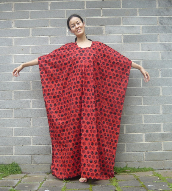 As regular readers of this blog would know, I’m rather partial to batik and African prints. So there was no way I was going to pass up this tent… er… dress… when I found it at Savers a few months ago. Especially as I had a voucher to use up, so I got this super expensive (ie $10, haha…) item for NOTHING.