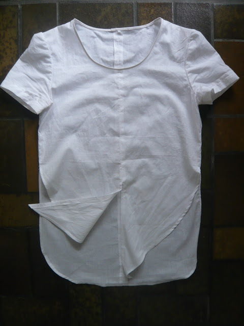 The top sat around unfinished (I hadn’t neatened the sleeves or hem) under a pile of material and other projects until I was looking for something to do over the summer holidays and the inspiration fairy waved her wand in my direction. She said I should hem the sleeves, unpick the side seams up to the waist and trim each side of the front, as well as unpicking the centre front up to the waist. Then of course she told me to hem all the raw edges. So I did. You can’t argue with the inspiration fairy.
