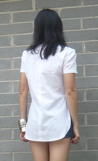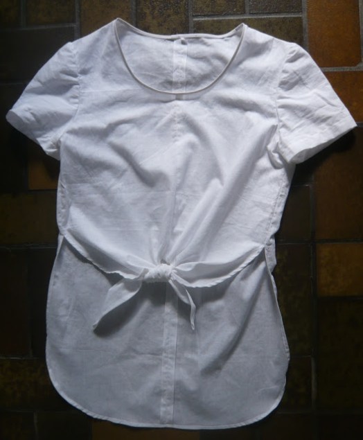 Have you ever tried to take detail shots of a white garment? The inspiration fairy had flown off by that stage without offering any photography advice, so I’m not sure if you can see how it turned out. Probably not… so here’s the less posed but more easy-to-see shot of my new tie-front top, without me in it and without any sun reflecting off it.