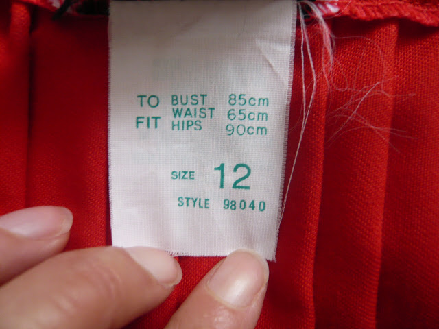 That is, it was a size 12 back in the 1980s, which I am guessing is when this skirt came into being. Now, I can tell you that my measurements have hardly changed since I was 12*, which was also back in the 1980s (aggh). Yep, they’re pretty much what it says here, give or take a few centimetres…