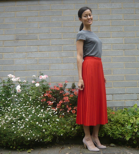 日本では洋服のサイズの付け方はこの数年、変わってきましたか?オーストラリア生まれ育ちの私なので、日本での場合がちょっと分からないのですが、オーストラリアではかなり変わってきました。大学時代から現在にかけて、自分の寸法はほぼ同じなのですが、大学生の時は多分12サイズぐらいでした。写真ではチャリティショップで見つけた80年代の12サイズのスカートをはいっていますが、今お店で新品のスカートを買ったら、多分6から8サイズになると思います。20年前の寸法と今の寸法が変わっていないのに!変だと思いませんか?英語では「vanity sizing」(「自慢できるサイズ」という意味)ですが、どんどん小さいサイズを付けたことで、女性がうれしくなって買ってくれるというコンセプトらしいです。「普段は10サイズなのにこのブランドでは8サイズでも着れる。やった!買うわ!」という経験、ありませんか?それはただ、本当は10サイズの物を8サイズにすることで、お客さんが喜びを感じて購入してくれるとブランドが使っている技です。心理学とファッションの関係、中々深いですね。私は、着れるなら別にどんなサイズが書かれてもかまわないのですが、皆さん、どうですか?数字の小ささで買ってしまったこと、ありますか?