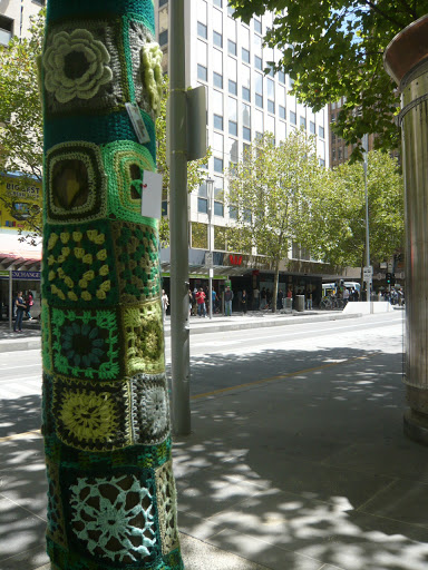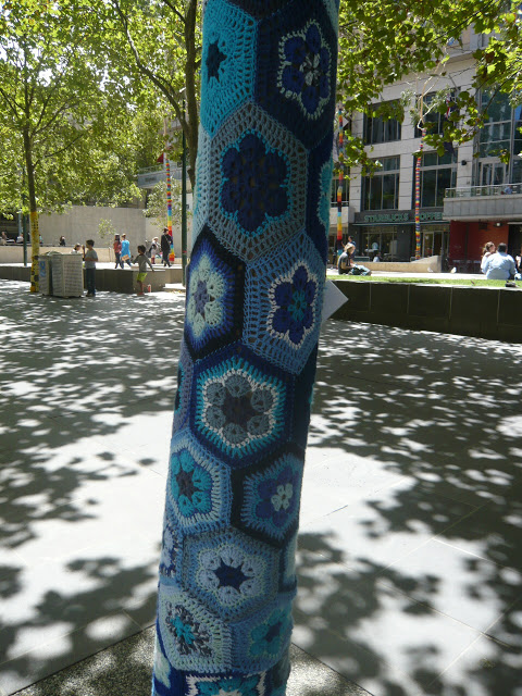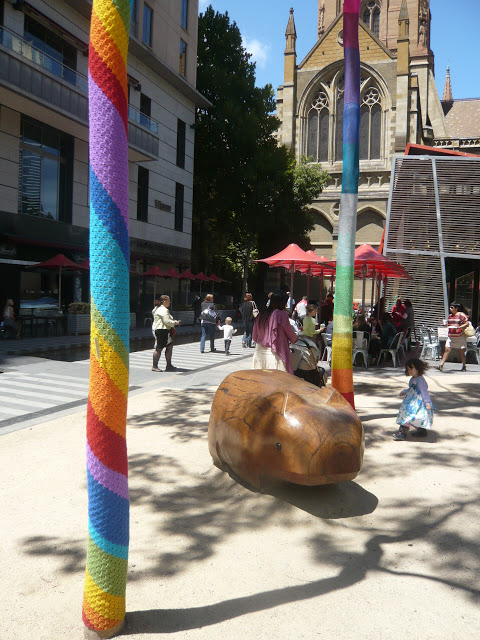 thanks for sharing that, as one of the many members of Yarn Corner who contributed to this project, (mine was a mere 3m of knitted tree), let me say how much we enjoy making others happy with our Yarn Bombing. City Square is about Melbourne's Urban Forest Strategy, bringing awareness to Melbourne's wonderful Trees.