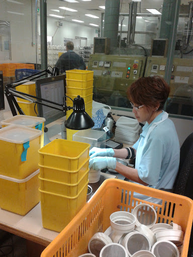So where do the buyers get the data about the wool that they are potentially buying? Well, once the fleece is off the sheep’s back, “core samples” (ie from the centre of a bale) are taken for testing at the Australian Wool Testing Authority. There are lots of processes that the wool goes through and lots of tests. As I was interpreting I didn’t get photos of everything, so these are just a few examples of what happens to the wool that gets tested (which is apparently most wool grown in Australia, even though the testing is not mandatory).