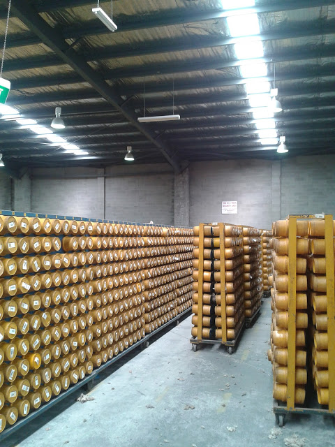The Japanese guys were on a kind of study tour which we started in Geelong at the National Wool Museum, which was absolutely fascinating – did you know that some machines once used revolving THISTLES to make blankets fluffy? – but I didn’t get any photos there as I was too busy keeping the group together and interpreting. I did manage to snap some of what we saw at the wool auction centre though. The auction centre is packed full of wool samples from all over the east coast of Australia, all of which vary in quality and price. Buyers receive a catalogue full of data about the wool (more about that later) but they still need to come here and actually see and feel it for themselves before they bid (the auctions take place once a week over two to three days).