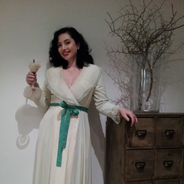 And then changed into something a little more comfortable to serve them… (aka a peignoir set she bought at one of the op shops in Dandenong).