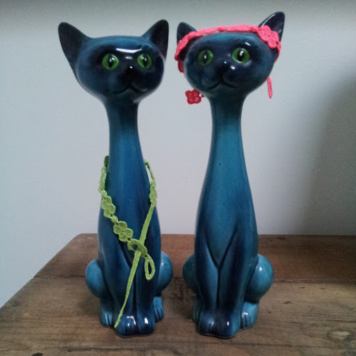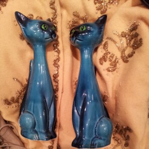 I bought this beaded cardigan for Marianne and this pair of cats for me.