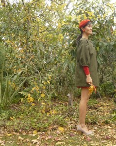 洋服作るのは大好きですが、時間や準備が必要な物で、最近どちらかというと買った古着をリメイクするのが多いです。でも、今流行っているボリュームスリーブのコートが欲しかったので、自分で作ってみることにしました。チャリティショップで買った型紙を使って、友達にもらった生地で作ってみました。型紙はかなりシンプルで本当はルームウェアのはずですが、自分の考えたデテールでコートっぽくしました。袖の入り口にタックを入れたり、首のところにボタンを付けたりしました。本革のクルミボタンですが、数年前、チャリティショップで買いました。裏地もポイントですが、東京のフリーマーケットで見つけた着物から作ったものです。だから、このコートの生地、ボタン、そして裏地の合わせた値段は多分高くても¥500ぐらいです!他に着ているものも全部手作りやチャリティショップで買ったものですが、もっと知りたい方は上の英語のリンクをクリックしてね!