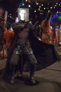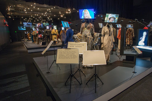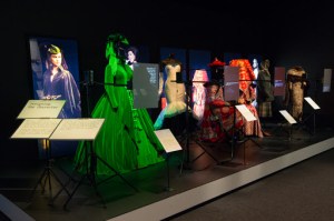 Another costume that was green was this one worn by Tippi Hedren in the Hitchcock thriller The Birds. Apparently Alfred Hitchcock gave designer Edith Head the brief that the costume would be worn for most of the film so Head came up with this “Eau de Nil” shade which was easy on the eye and didn’t distract the viewer from the scariness of the storyline. As much as needing characters to stand out, some storylines require them to be practically invisible, such as Jason Bourne in The Bourne Ultimatum who was dressed in grey shades so he would be lost in a crowd. Using something like Photoshop, the exhibition shows just how ridiculous he would have looked if he were wearing a Hawaiian shirt instead… definitely one of the technological highlights!