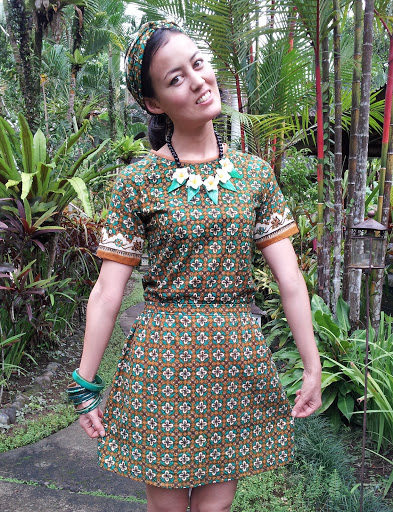 東京に住んでいた時、大きいジャンブルセールでバティクの生地を¥100で買って花火大会用のワンピースを作りました。当時(8年ぐらい前かな?)結構着ていたけれど、今となっては裾のフリルや細いストラップが気に入らなくなって最近全く着ていません。でも生地実体がまだ大好きだから人にあげるにはもったいないと思って、リメイクすることにしました。バリ島の旅が決まったら、結構悩んでいたリメイクがピンときました。バティク地は60年代に広がったから、60年代にインスパイアされたコーディネートにでも作り直したいな〜と思いました。(そして、路子サマの60年代スタイルにもなぜかインスパイアされた!そのイメージは一体どこから来たか、全く分かりませんが 笑)