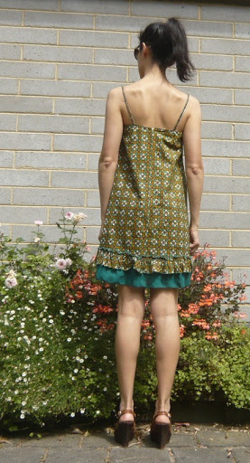 Many years ago I made this dress from some batik material I bought at a jumble sale in Tokyo for $1. I wore it a bit but in recent times it’s been buried in my wardrobe as the frilly hem – which I originally added to make the micro-mini length a little more modest – hasn’t really felt right, and I’m not so keen on the spaghetti straps either.