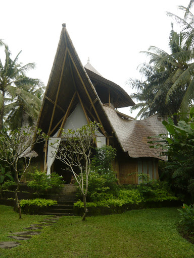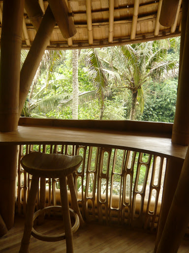 竹と言えば、アジアならほとんどどこでもあるイメージがありますが、バリ島のウーブッドにあるグリーンヴィレージで見た竹はかなり違います!川沿いの森の中にある静かな場所に位置しているヴイレージですが、そこにある家は全部竹で作られていて、ジブリの映画に出てきそうで本当に不思議です。普段入れないヴィレージですが、ツアーなら行けるから予約して行きました。(実は平日なら、同じく竹でできてるチョコレート工場、竹工房、そしてグリーンスクールもツアーで訪問できるけど、完全休みモードになりきった私が予約の連絡したのは金曜日だったため、行ったのは土曜日でヴィレージしか見れませんでした。)家は4件ぐらい案内されましたが、ほとんど全部窓なしなオープンプランという作り方なので外から中へ、また中から外へ、のような優しい空気の流れが感じられてとてもリラックスできるところだと思います。