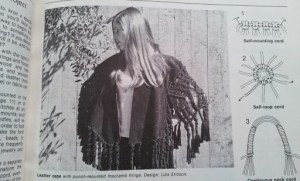 There are many, many projects on my list of to-do-DIY, and when I found this book at an op shop for $1 this weekend I was reminded that macrame is one of them. Imagine being able to make a leather cape like this!