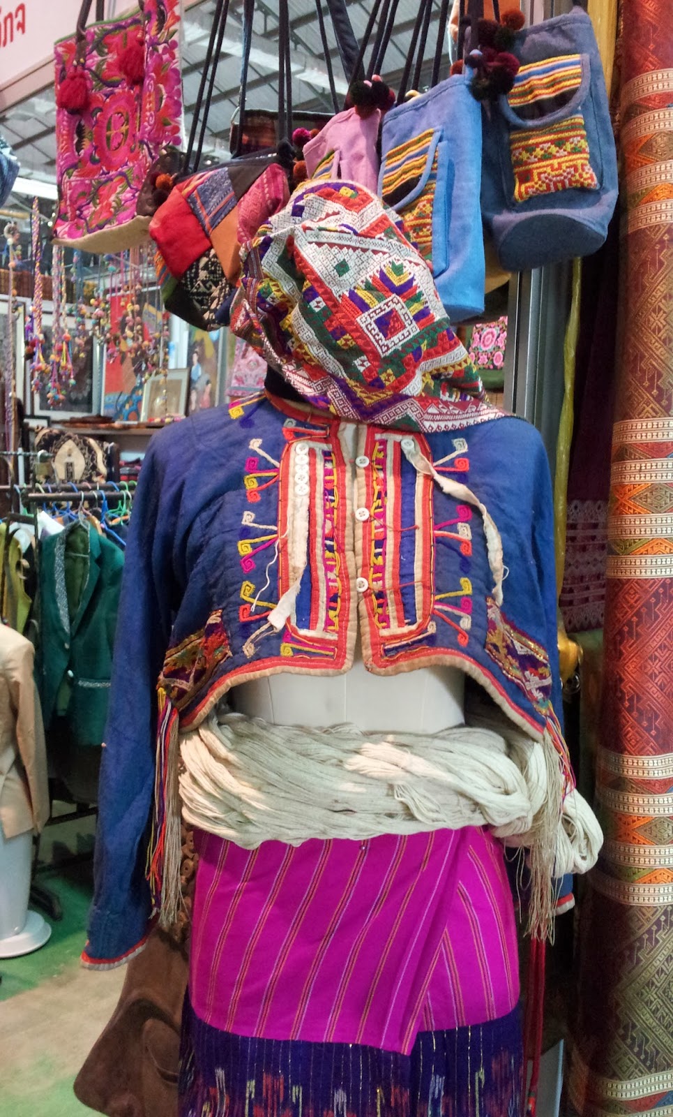 It’s my last night in Vientiane and I thought I might get a post done before I head off to Burma tomorrow, but it doesn’t look like that will happen. So for now, here’s a pic of an amazing ethnic outfit that I saw (and did not buy!) at the Lao Handicraft Festival.