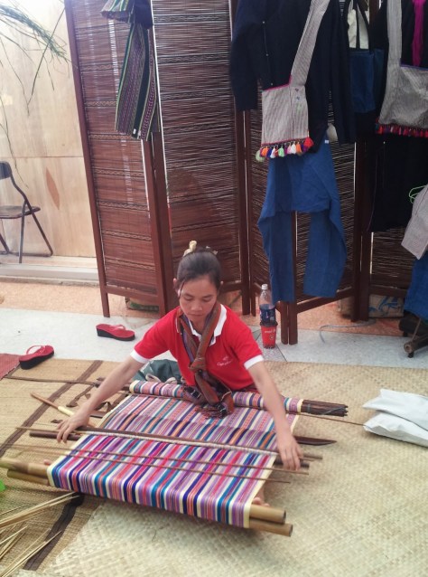This one was weaving on what I think is called a backstrap loom (again, correct me if I’m wrong!)…