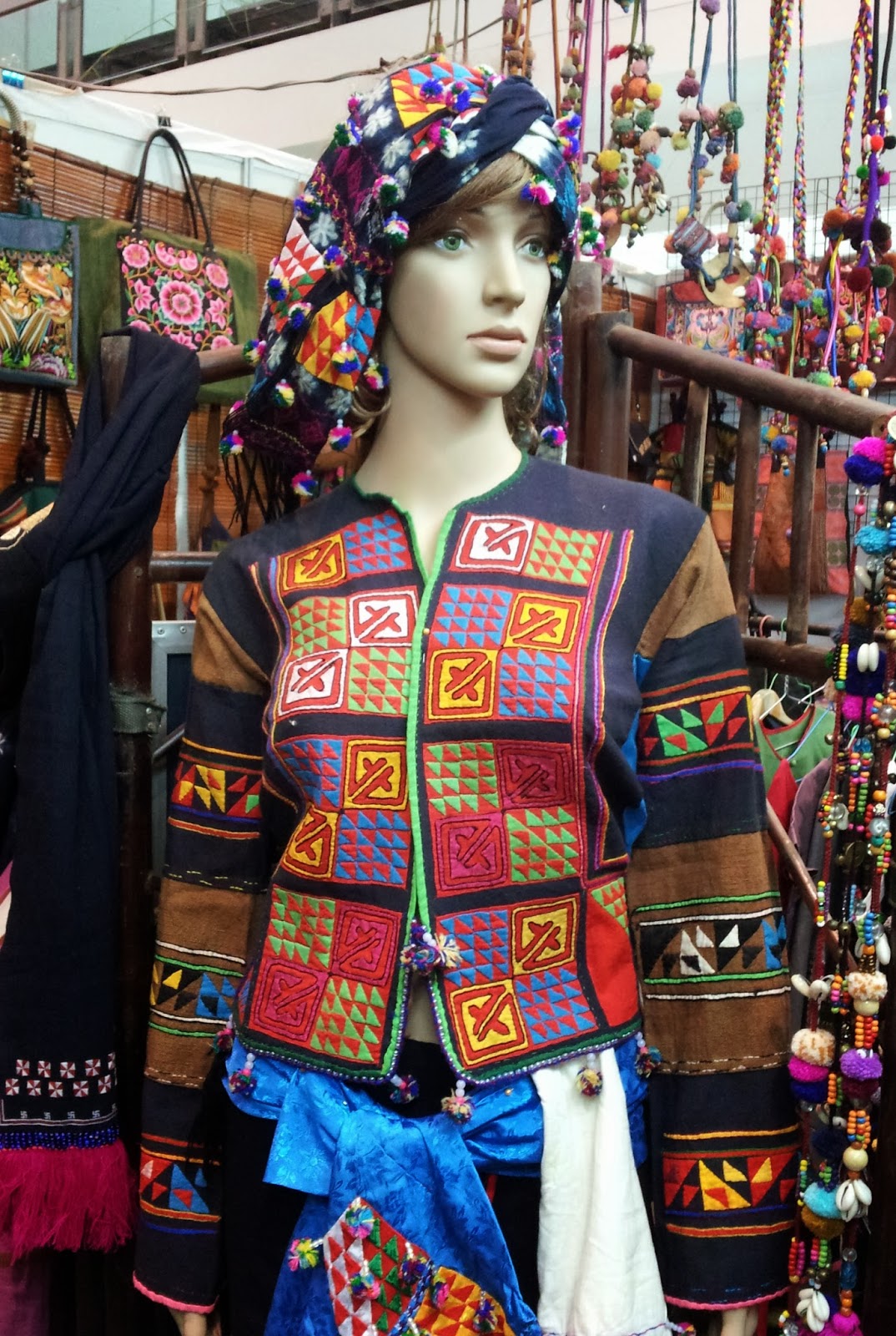 I had never been to the fair before so wasn’t sure of the size and allowed three days in Vientiane, just in case I ended up ordering some product prototypes to complement an accessory project I’m working on (all will be revealed very soon!). I didn’t actually do any business at the fair, as it turns out, but it didn’t hurt to see what was on offer. I wanted to buy this jacket but it was only being sold as part of the entire outfit, which was about $600 and included this dyed, appliqued and pom-pom-festooned headscarf – basically a length of material that had been decorated within an inch of its life (aka just the way I like it!!).