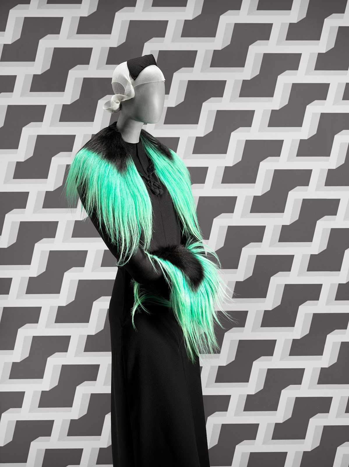 Fur (colobus monkey), silk crepe, silk (braid), resin clasp (a) 34.0 cm (centre back), 200.0 cm (hem circumference) (tippet) (b) 46.0 x 38.0 x 14.5 cm (muff)