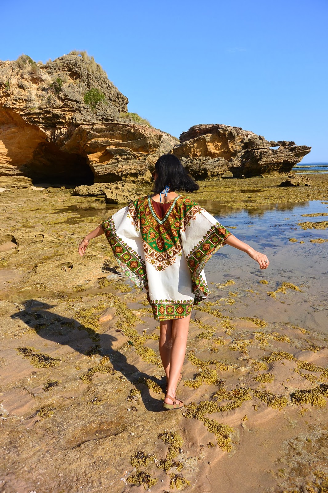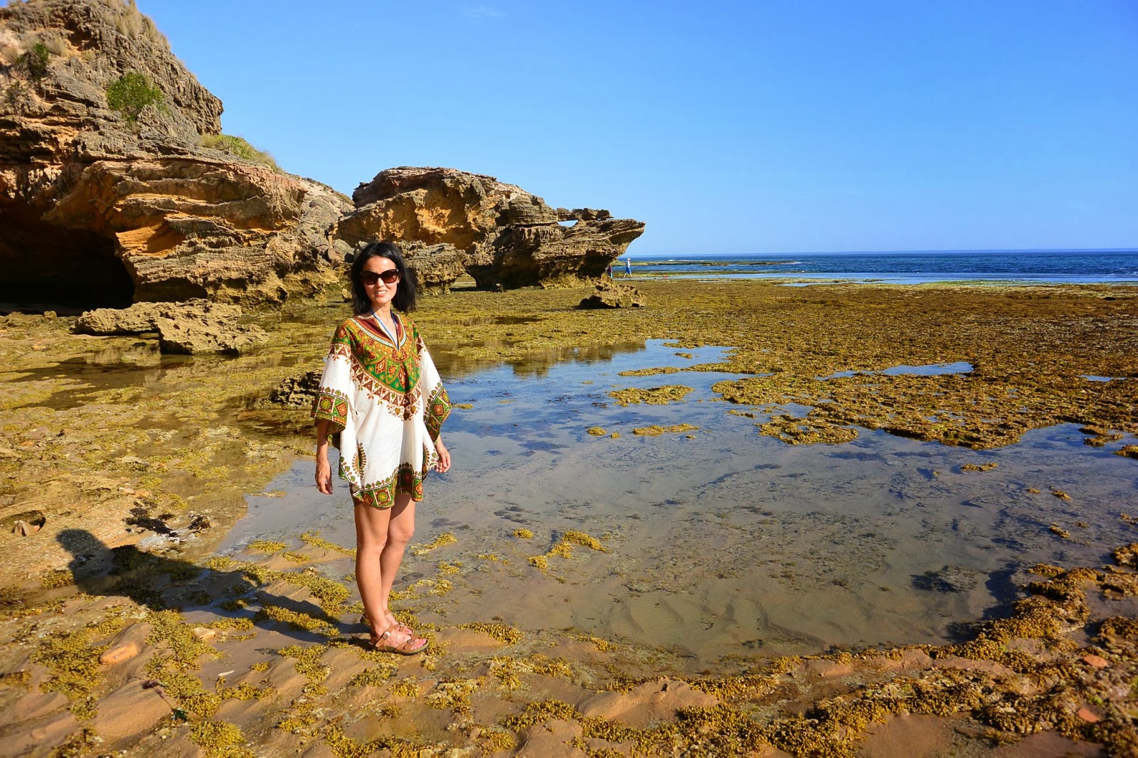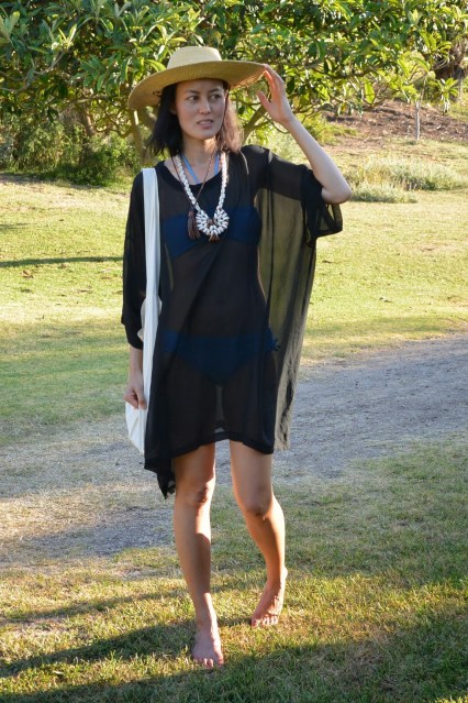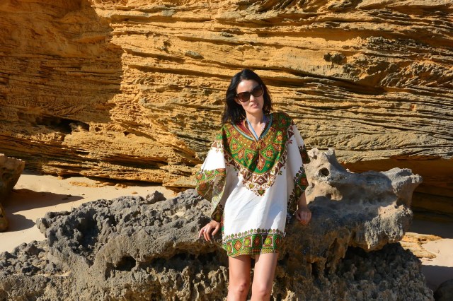 Kaftans make a great cover-up for the beach – in this case, the back beach at Sorrento – as they are so easy to slip on and off. I of course also slopped on sunscreen and slid on sunglasses, and recommend slapping on a hat too, although I personally much prefer my umbrella (because then I don’t have to seek shade, as it’s always with me!).