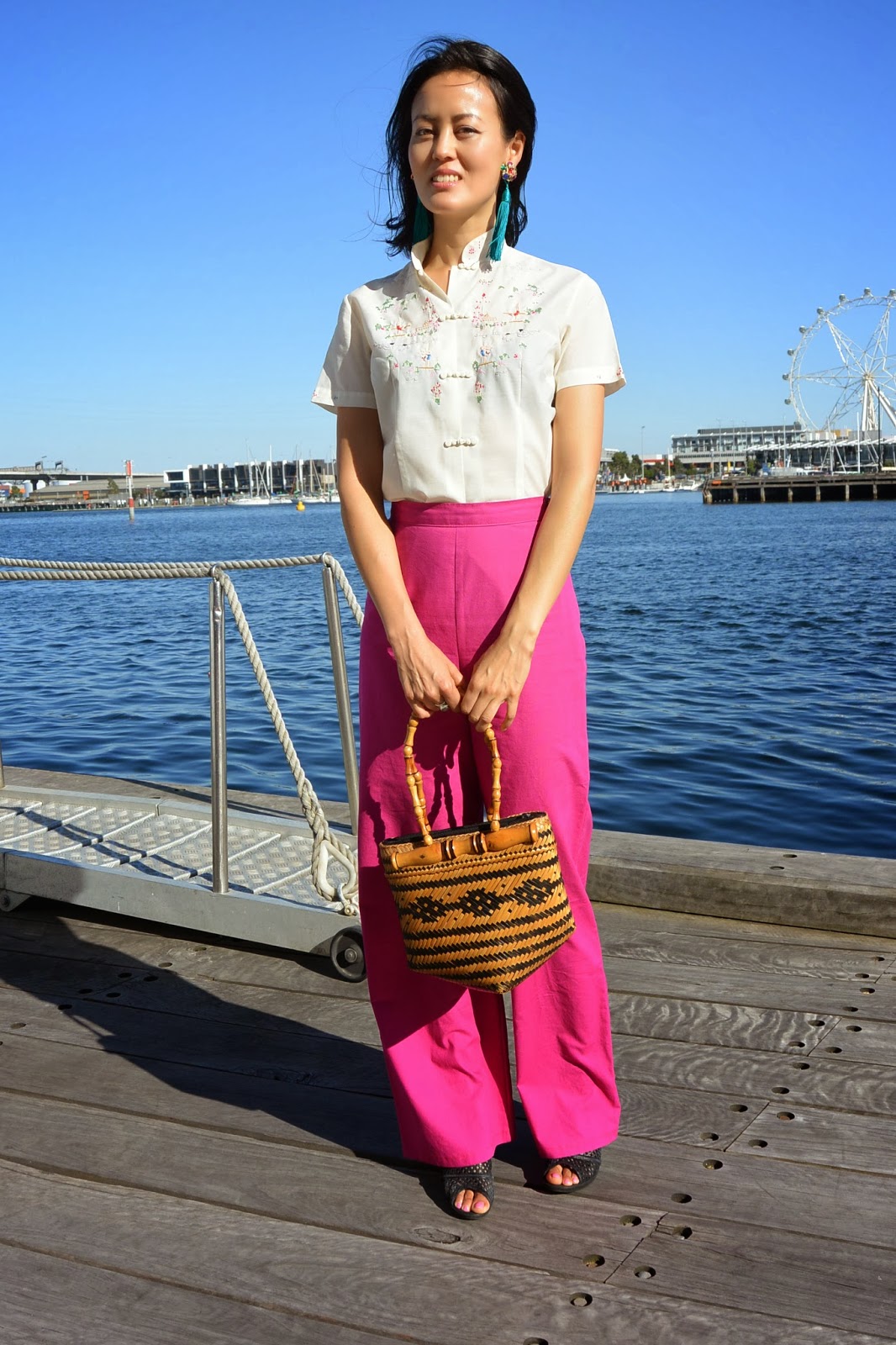 Apart from wanting to make a dent in my considerably large fabric stash, I made these pants because one of my style resolutions for this year is to stop wearing jeans as a default every time I’m sick of skirts or dresses. The fashion gods must have been listening when I made this vow, and had a word in the op shop fairy’s ear, because in the past few weeks I have found these…