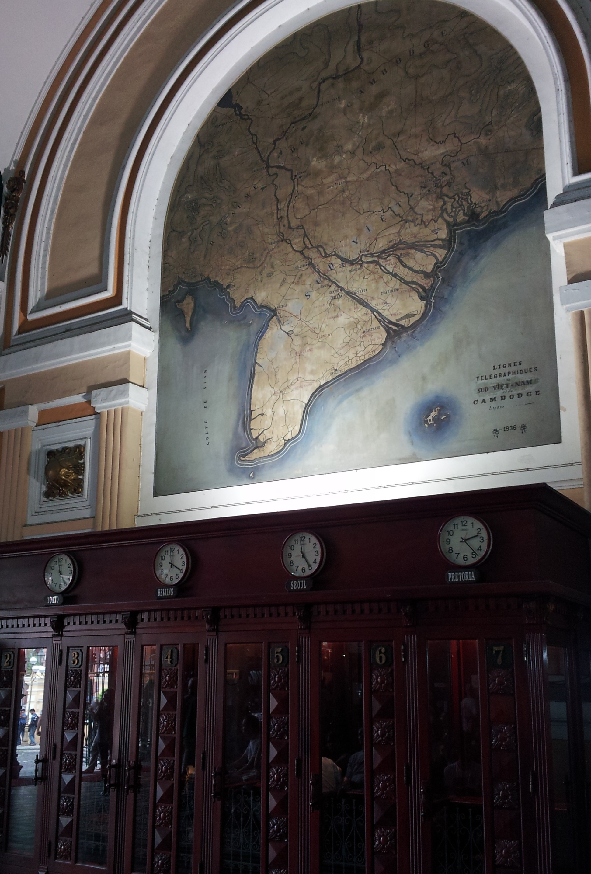 The glamorous Central Post Office in Ho Chi Minh even has phone booths under clocks showing times from different cities. It would be the perfect setting for a Poirot mystery! Pity Agatha Christie never visited Vietnam…(at least, I don’t think she did). Maybe there’s a draft of “Strangled in Saigon” lying around somewhere (I should have checked inside one of the booths!)?