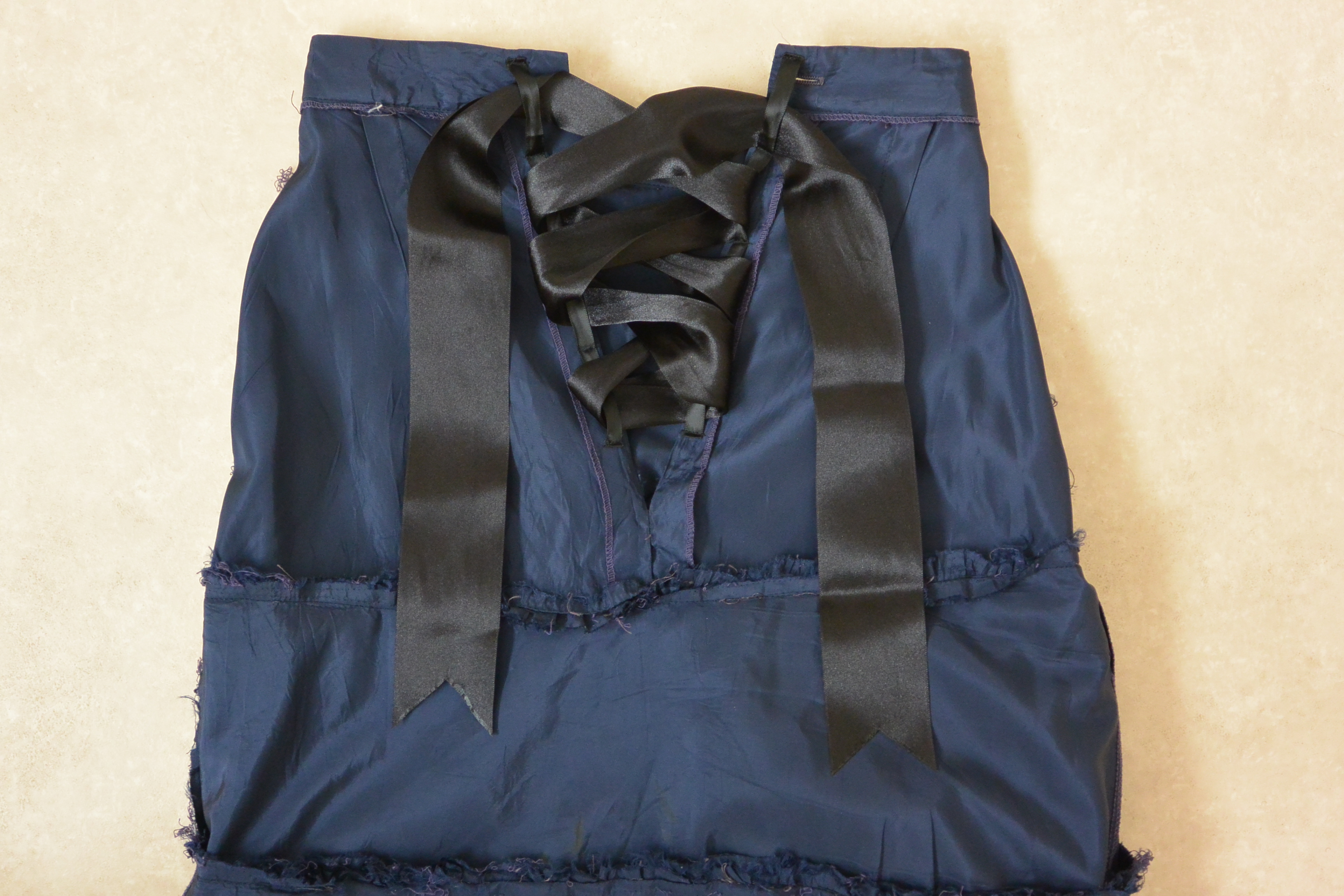 Normally I’d attempt to put a new zip in, but there wasn’t going to be enough fabric to meet at the centre back. So I ummed and aahed about buying it, but the clever girl at the register suggested that adding ribbon so it could be laced up like a bodice would take five minutes … and I was sold. Or rather, the skirt was sold, for $20. And it turned out that adding lacing really did only take about five minutes.