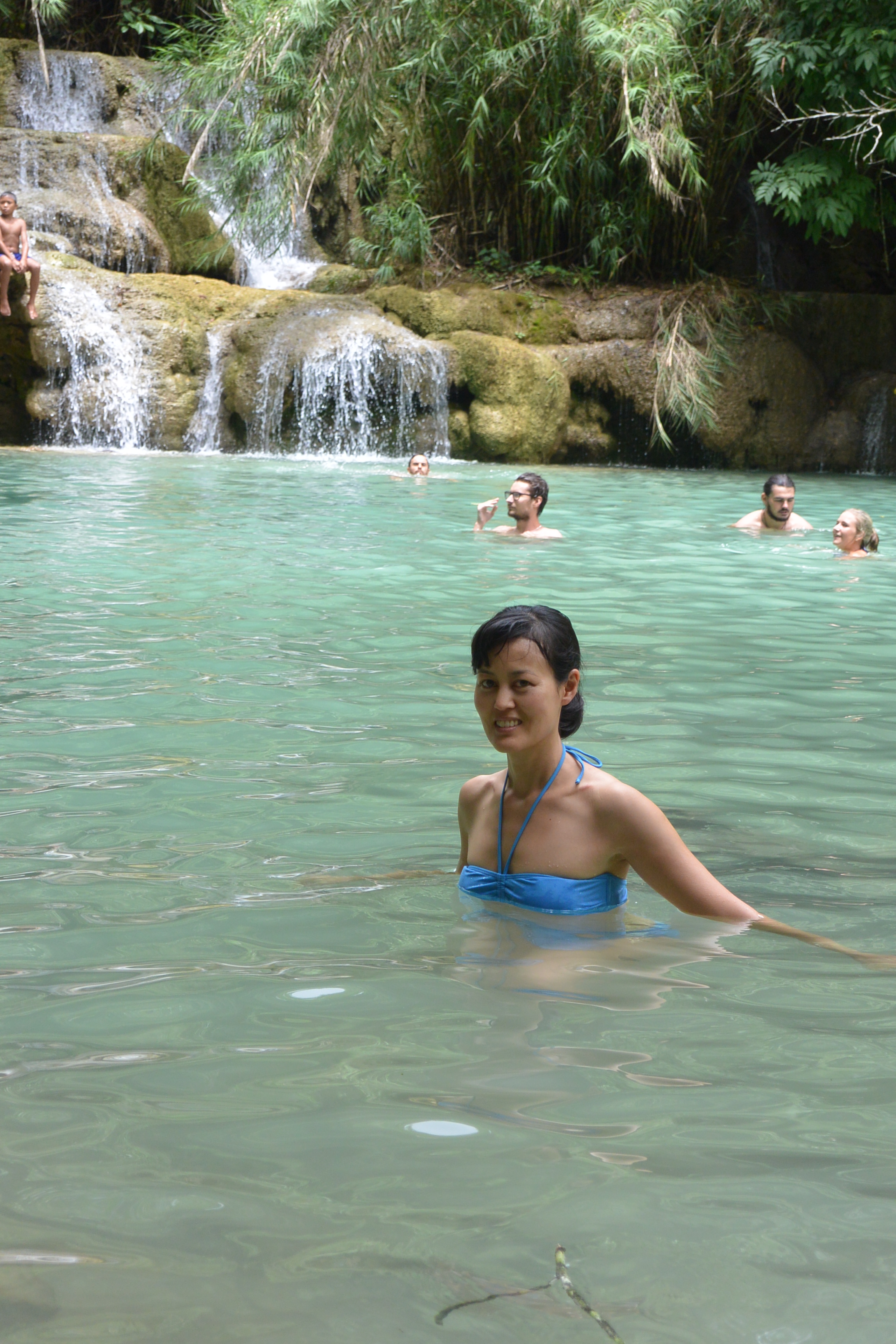 I’d thought it might be freezing and nearly chickened out but it was just pleasantly cool and so refreshing! Plus, in the shallows were little fish nibbling at swimmers’ feet and legs. People pay for “fish massages” all over Thailand and Laos so it was like a little extra got thrown in for free! If only I had one of these waterfalls (and the appropriate weather in which to fully appreciate it) in my own backyard in Melbourne… but in the absence of that, I might just have to make this my screensaver. Calm blue ocean? I think I prefer this calm blue waterfall!