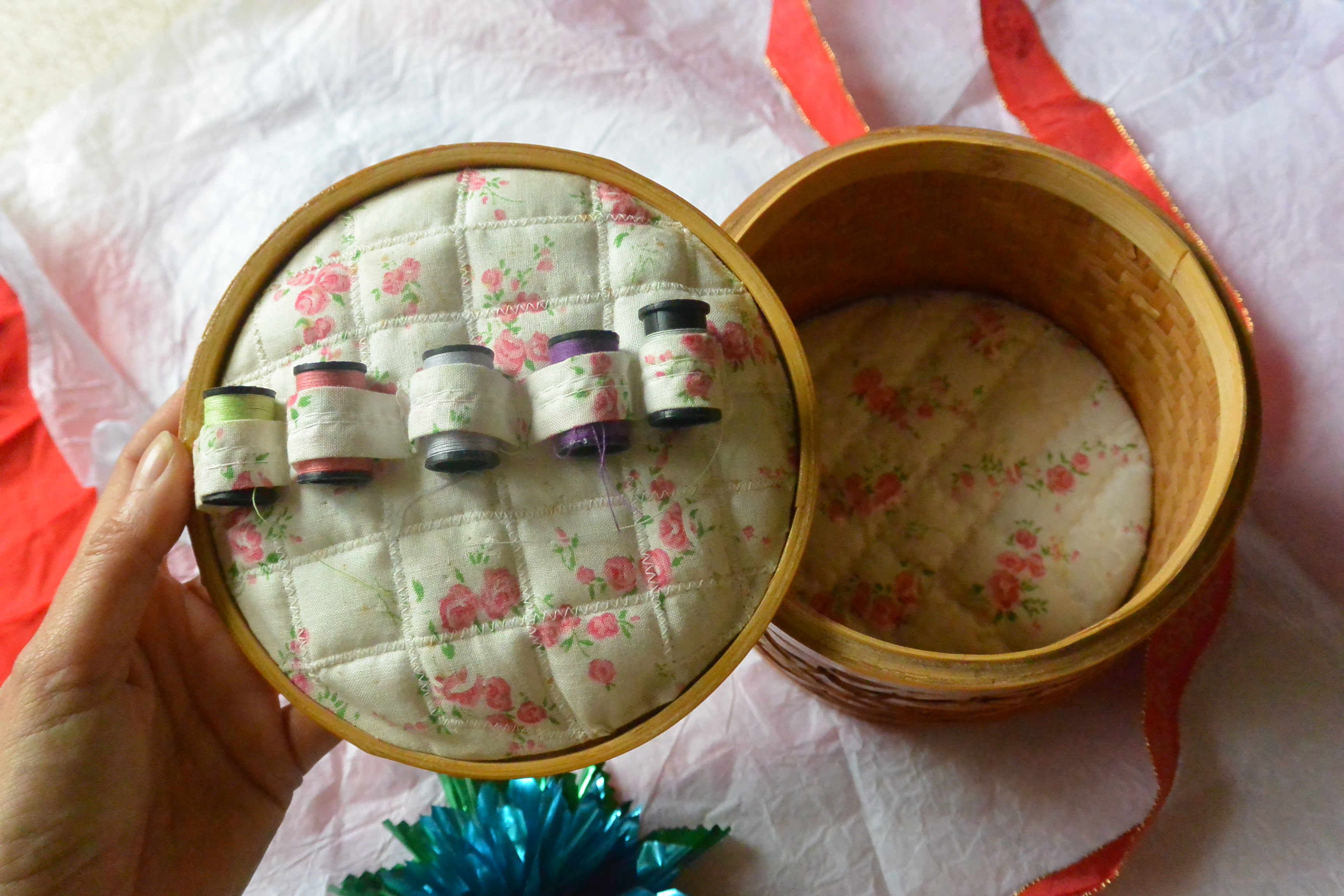 Apart from thanking my grandma (unfortunately too belatedly as she is no longer around) for setting me on the true path to a life of DIY, the point of this post is to give you an idea for an inexpensive but thoughtful gift that will keep on giving (cliched but true!) – ie a simple sewing or crafting kit. If you’re pressed for time or not quite confident enough to line a box or make a needle case, you can simply find an attractive container and stock it with the necessary goods, all of which are fairly much always available at opshops* (so not only are they inexpensive, but by purchasing them you’re giving back to the community as well as your intended recipient! And you get to go opshopping with a valid reason! WIN!).