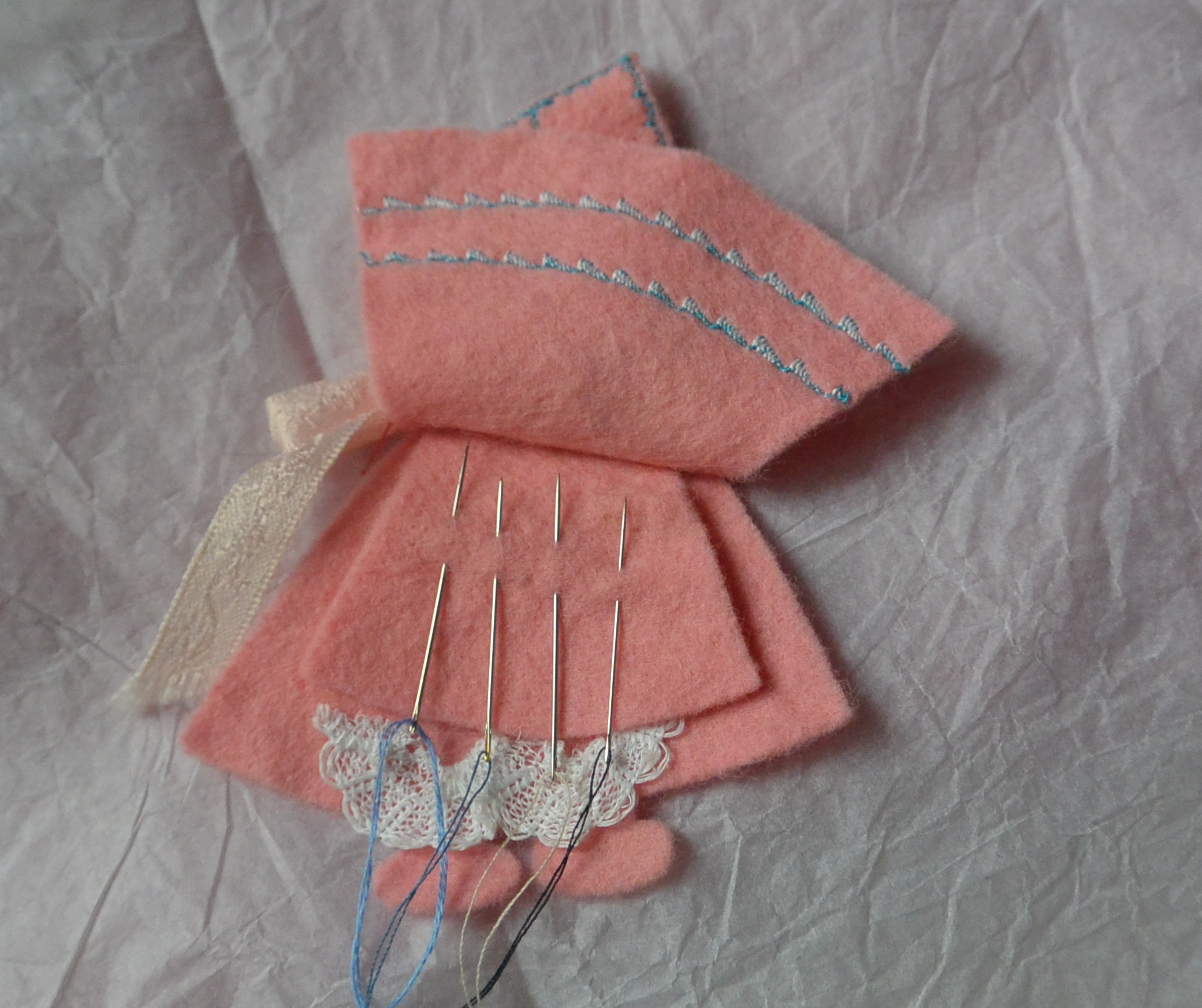 Grandma also made me this little needle case from pink felt and a piece of sequin-embellished crochet that she made herself.
