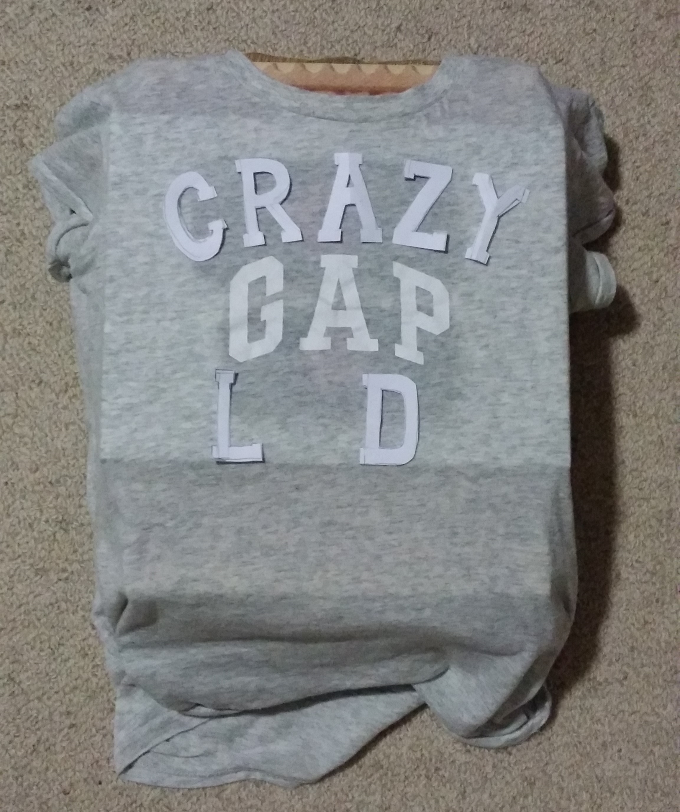 As anyone who’s ever read this blog will know, it is nigh on impossible for me to just Leave Stuff Alone when it comes to clothes bought off the rack – not that I buy much brand new anyway! But when I do, I usually feel compelled to alter it in some way. Sometimes it takes me quite a while to work out how to alter it, as was the case with this Gap logo T-shirt that I bought on sale when I was still living in Tokyo (so at least eight years ago) and have never worn except occasionally as exercise gear when my other stuff was in the wash.