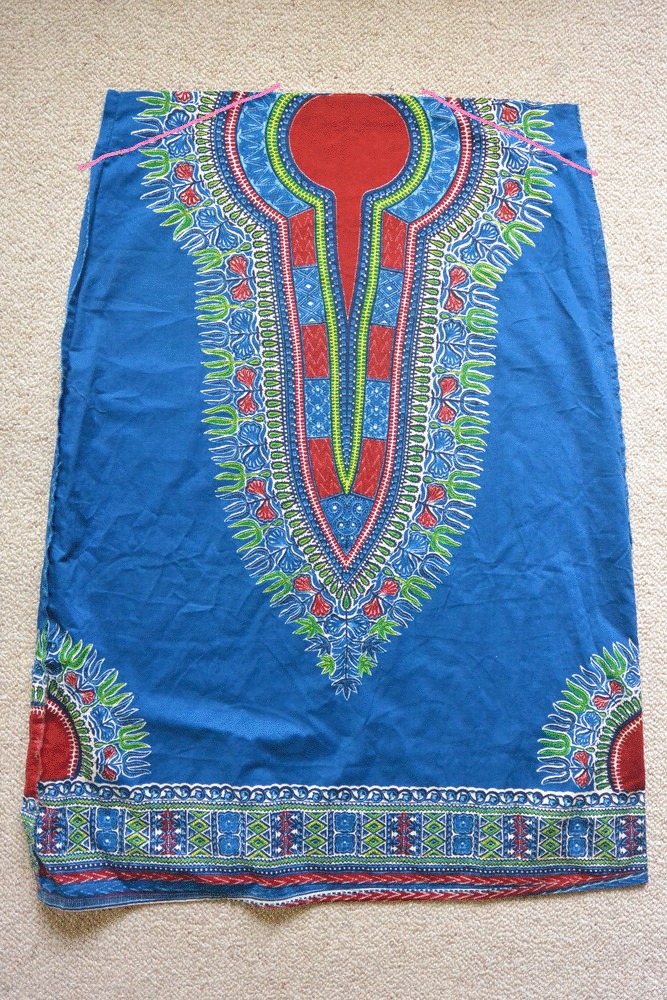 Like the Modular Miyake from my last post, this was a gift from Tetsuko’s mum, who was once an airline stewardess and so has quite a collection of exotic textiles and clothing. This piece was given to her in the ’70s and although it looks middle eastern, I’m fairly sure she said it was from somewhere in London – I’d guess a hippie kind of market. There are no tags on the caftan so I’m not sure where it was made, but I have a similarly printed top that I bought in Malaysia, so it’s possibly of Asian origin.