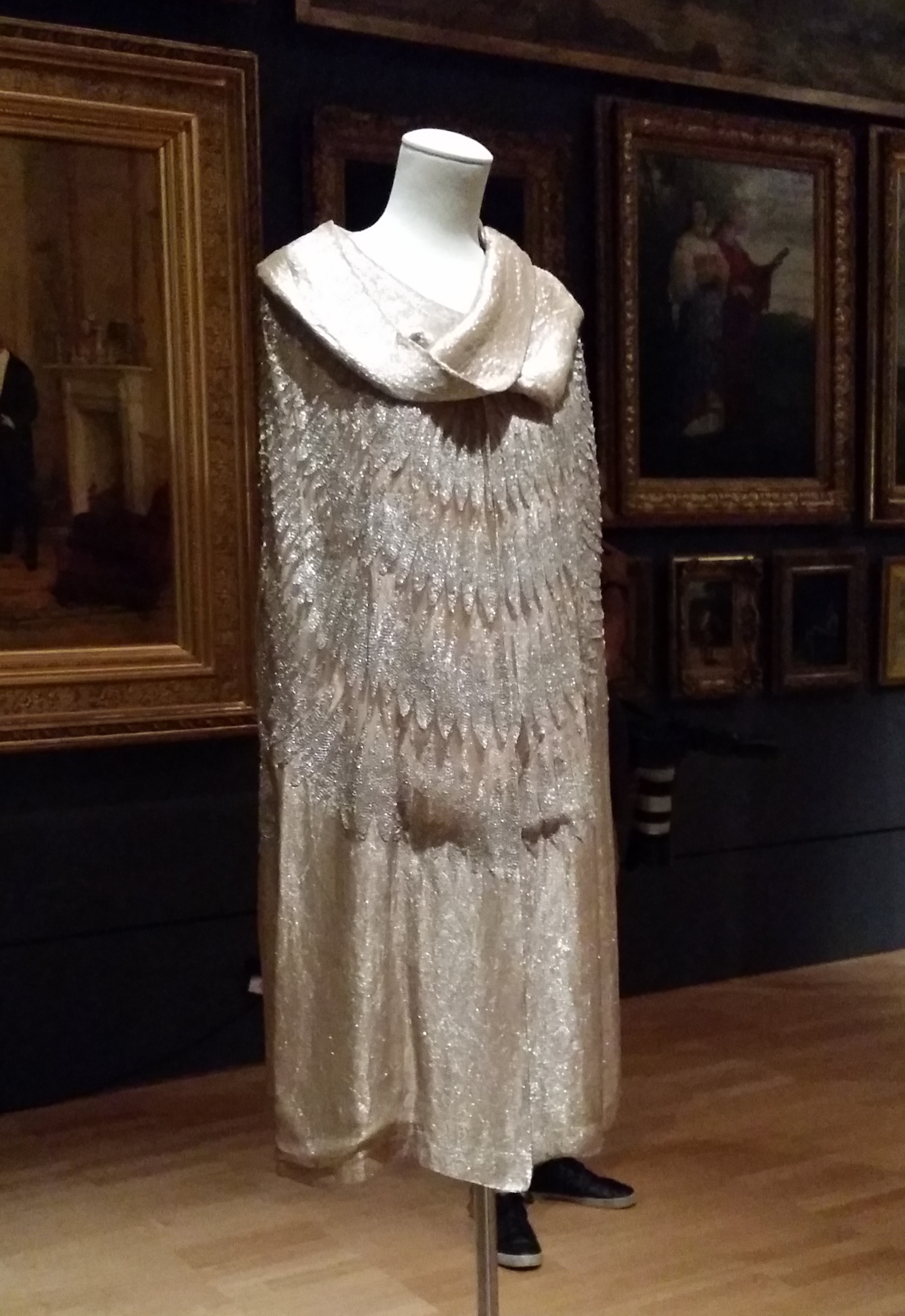 Madeleine Vionnet evening cape from c1928, unwittingly accessorised with somewhat more casual black sneakers courtesy of a photographer lurking behind it