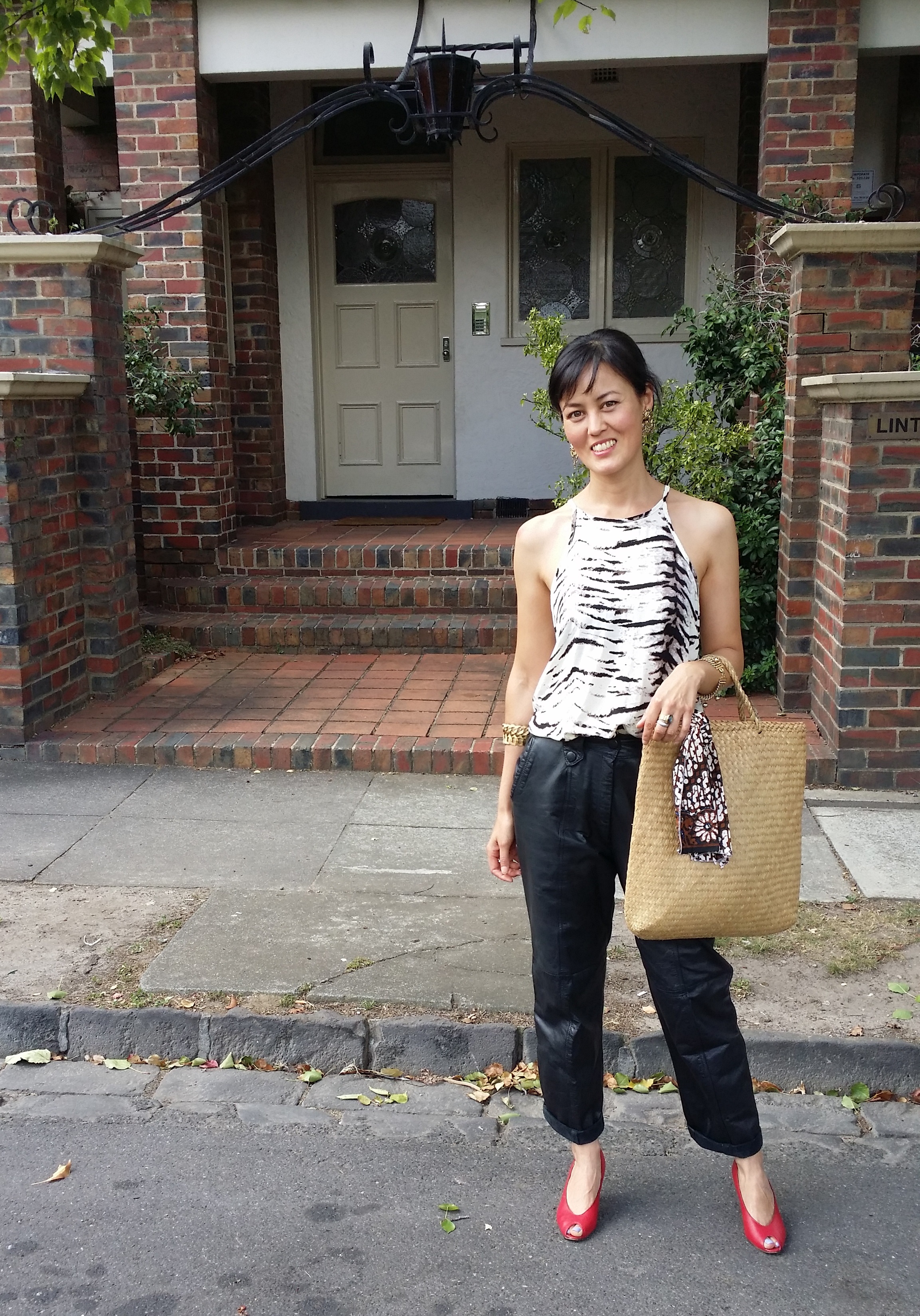 - Leather pants, $2 from a church fete in the Dandenongs last Melbourne Cup day. Pointed out to me by my aunt who is also rather good at sniffing out bargains!