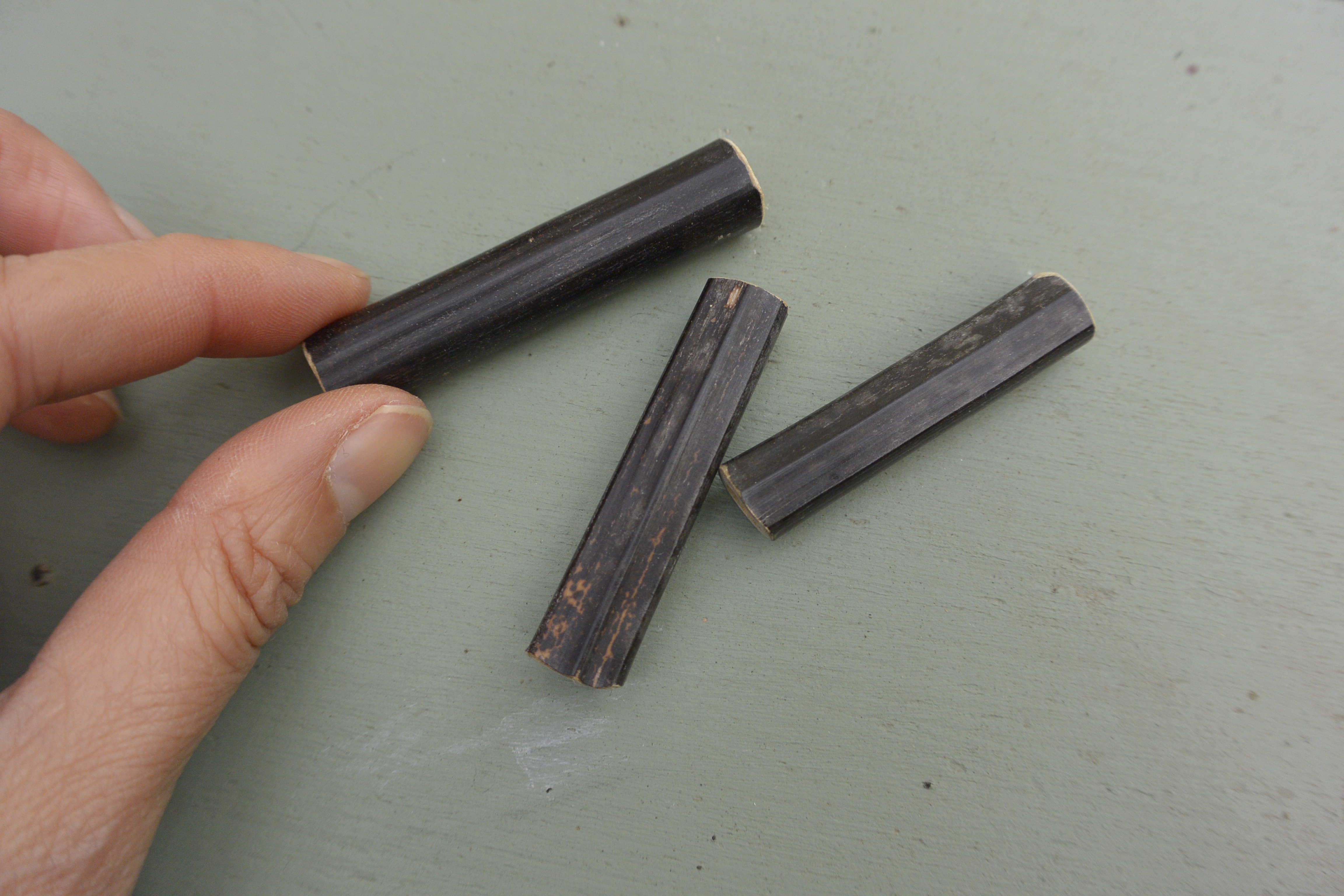 To be honest, I didn’t just go out and grab this black bamboo, I cut it from our backyard and chopped it up into short lengths a few years ago (!!) so it’s had plenty of time to dry out. I rediscovered these bits sitting around in the garage recently and sanded the ends down ready for use.
