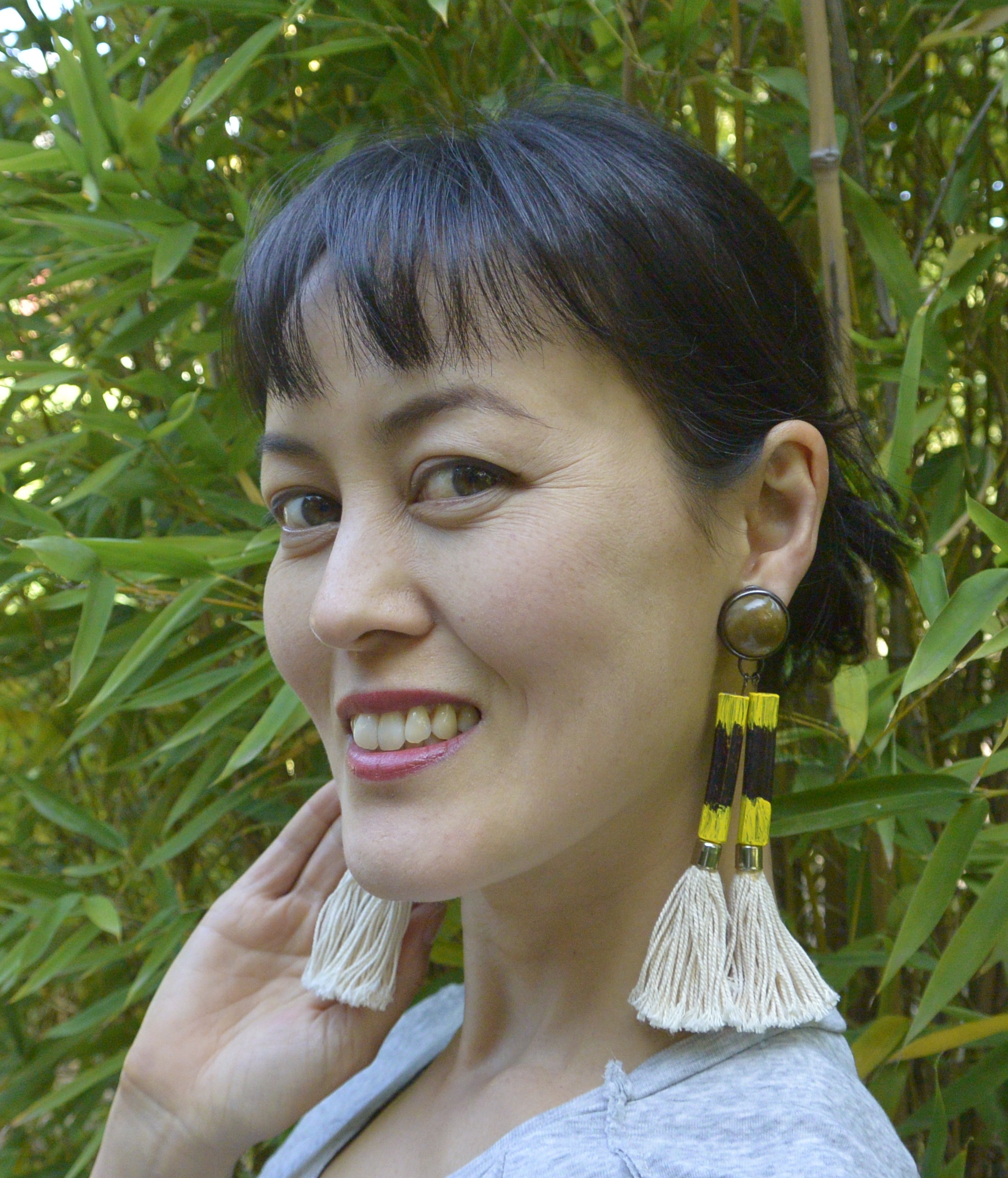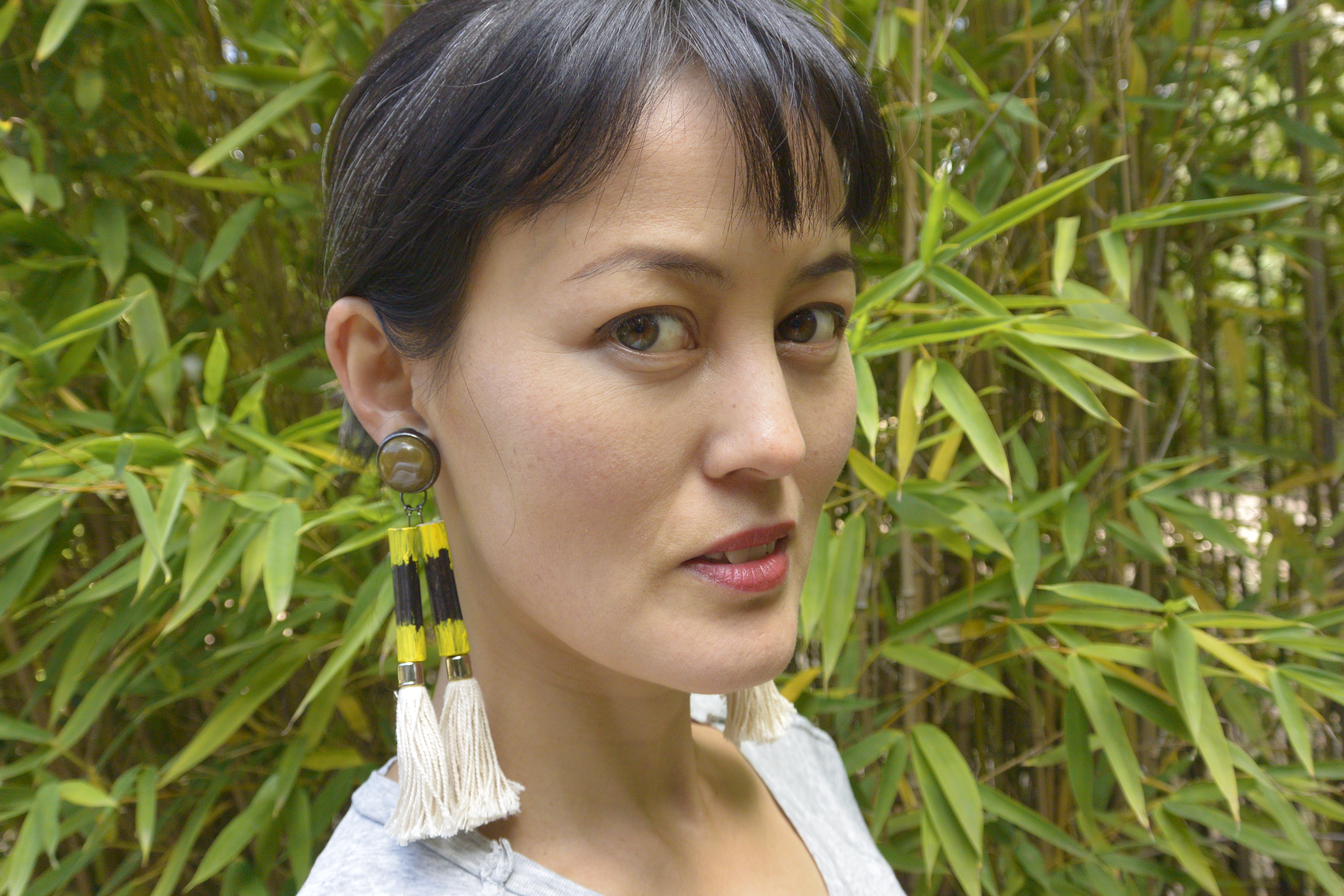 What do you do when you simply have no earrings to wear and no supplies to make new ones?* Head out into the garden and do some pruning in the bamboo grove, of course.
