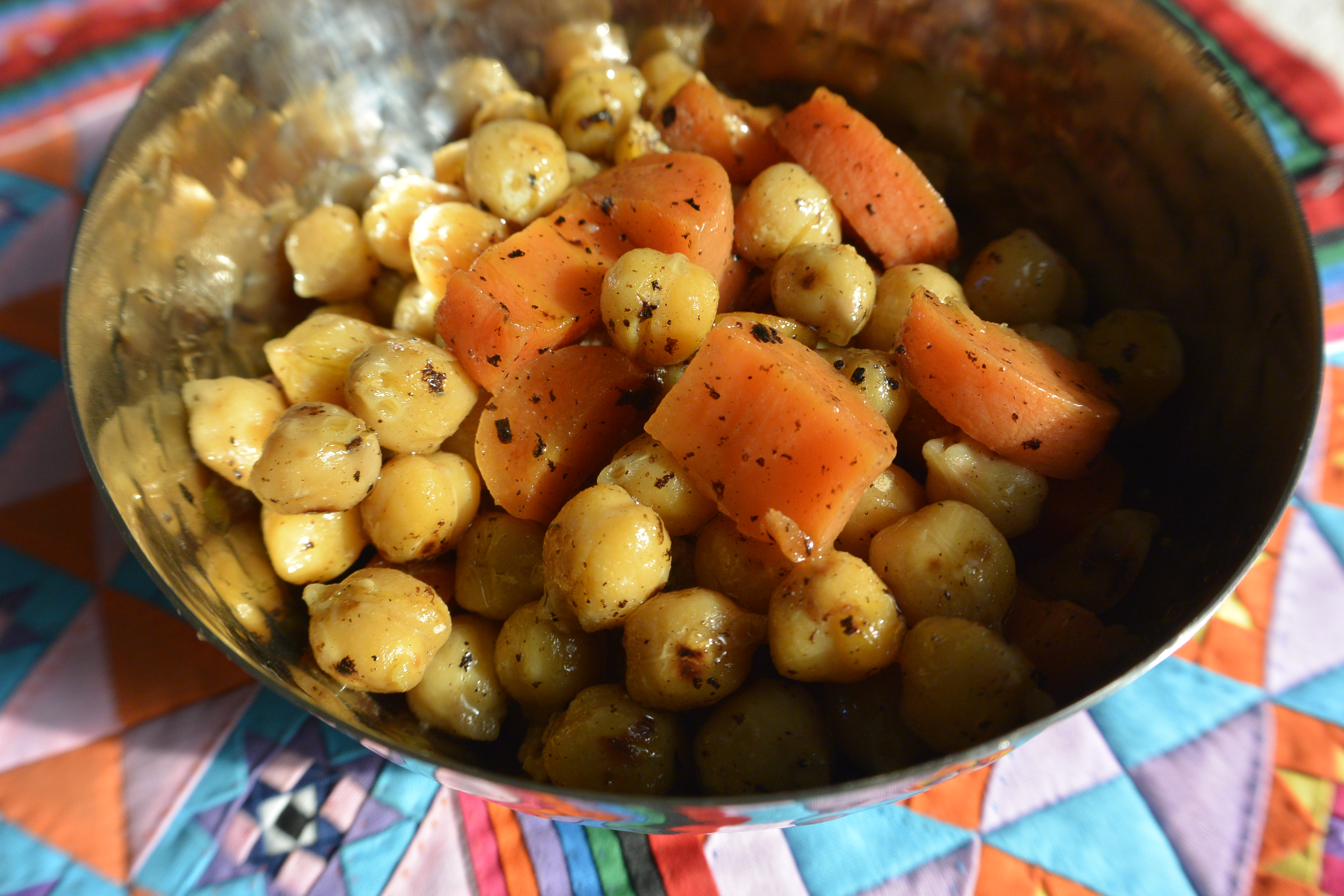 It may look suspiciously like chickpeas and carrots, but I promise it’s a chewy, salty, caramelly treat. And I made it up, so there’s your proof that it’s insanely simple to cook. Here’s the recipe: