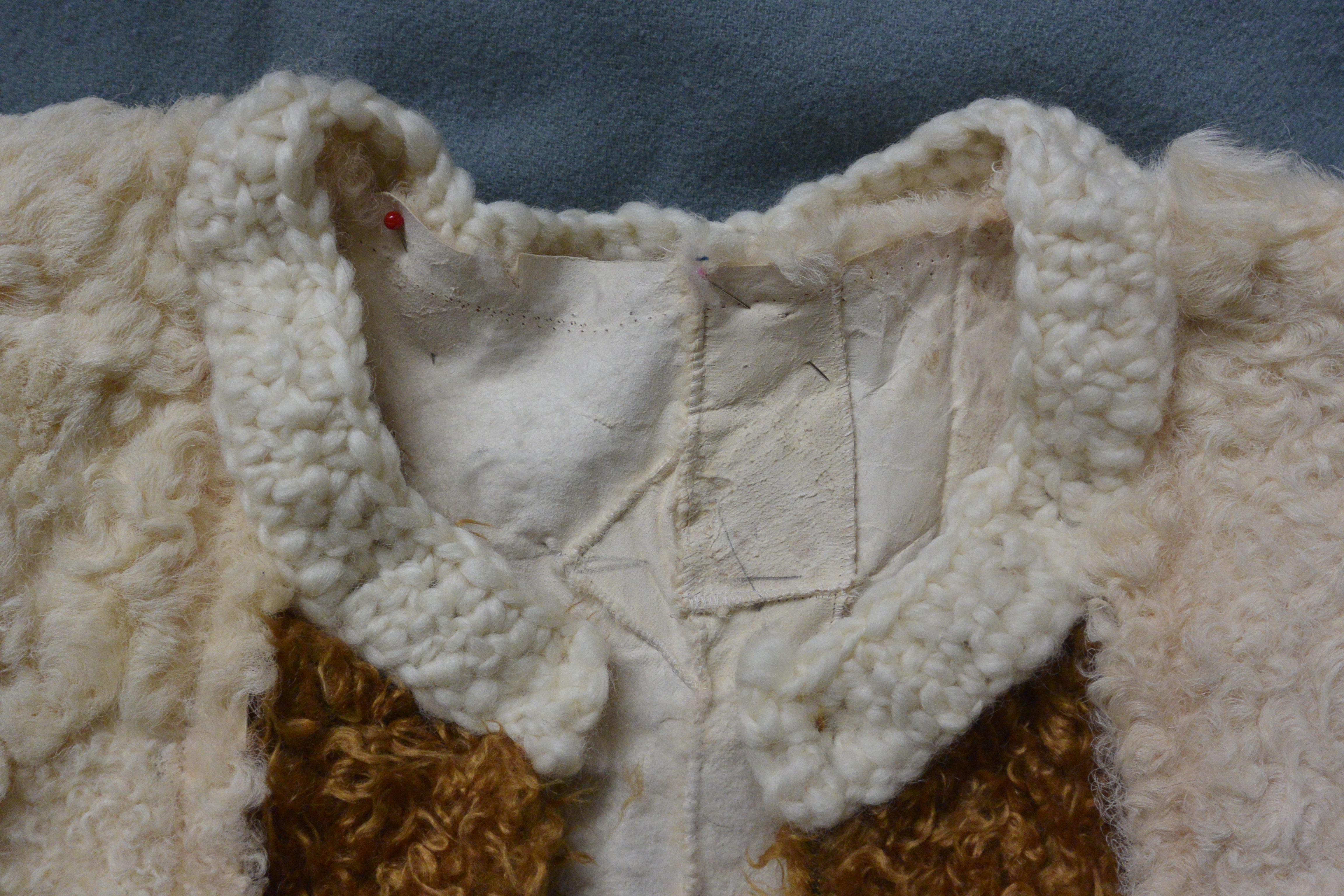 I sewed around the shoulders, cut off the excess around the seams and sewed the undersides of the sleeves together up to just below the armpit (there is still a small gap between the underside of the sleeves and the filled-in armhole section rather than them being attached to each other because I was too lazy to work out how to get the two bits to connect properly without a lot of bulk from the fake fur, but it’s not obvious unless I’m walking around with my arms in the air, which I don’t plan to do).