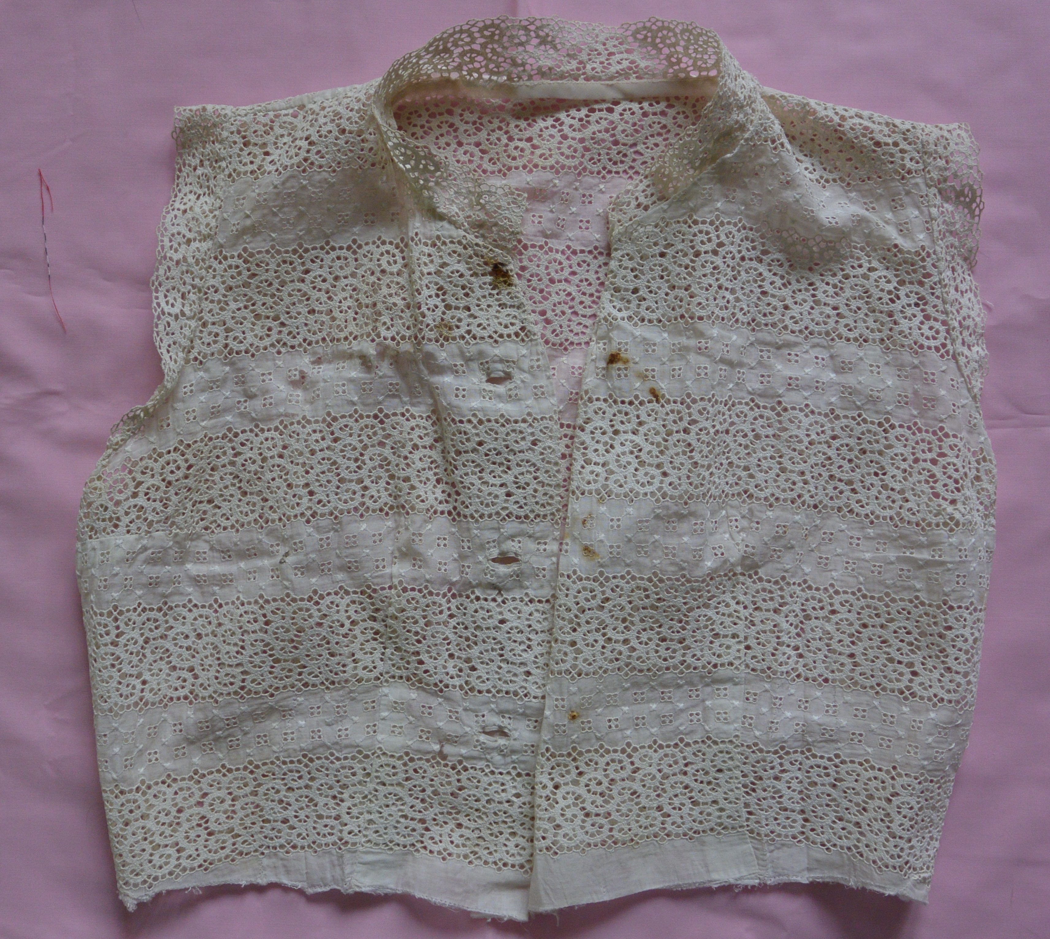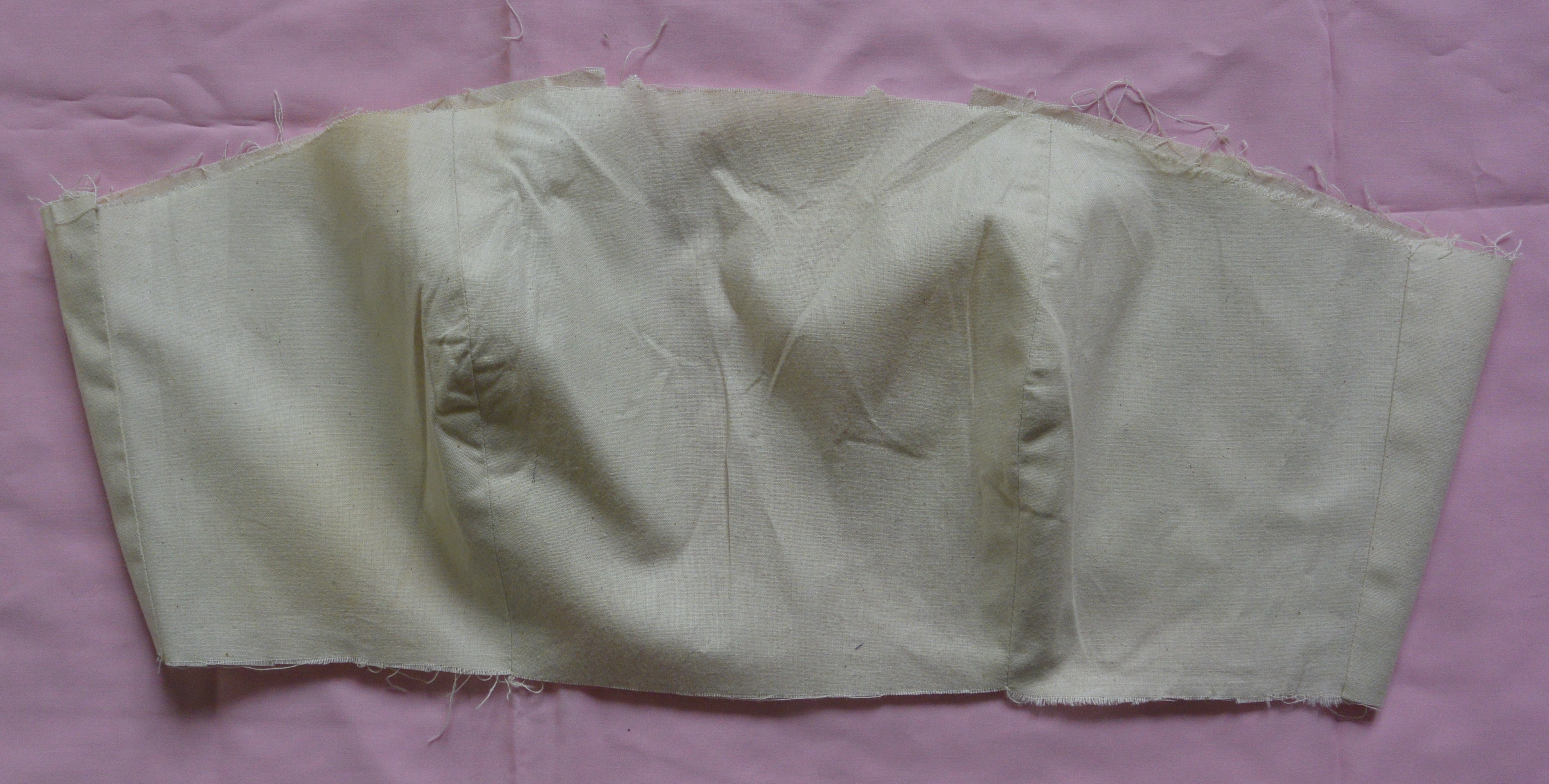 The front of the bodice, with rust stains quite visible from the metal-backed buttons (which I removed).