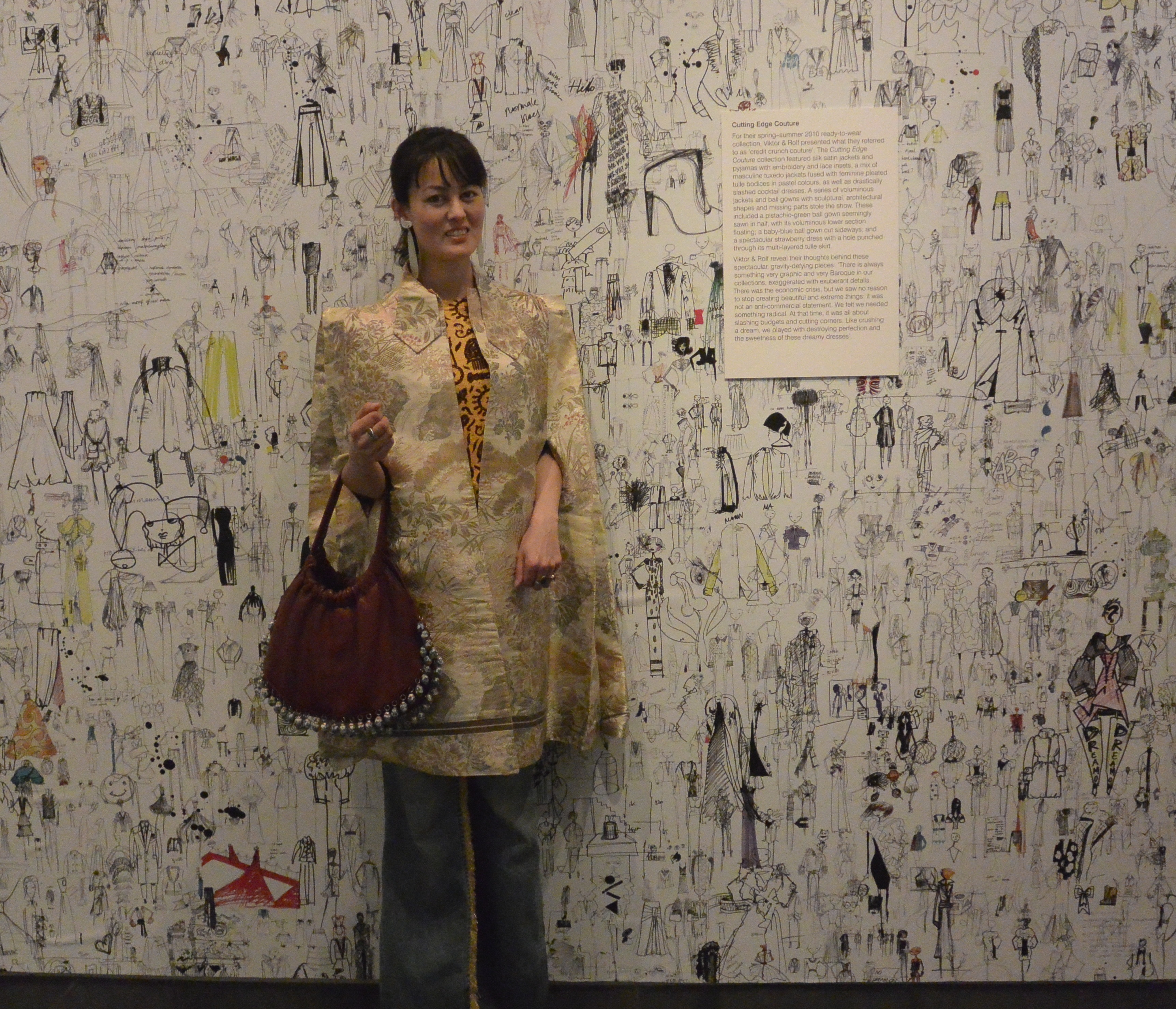Wearing the Japanese cape I found at the Salvos, plus Japanese ex-boyfriend’s jeans that he made with tinsel on the inseam. In the several years we were together, I never saw him cry – until, post-breakup, we went to a Viktor & Rolf exhibition in Tokyo and I saw him sneakily wiping away tears because he was so moved! So I wore his jeans so that through them, he could kind of be in the presence of Viktor & Rolf themselves.