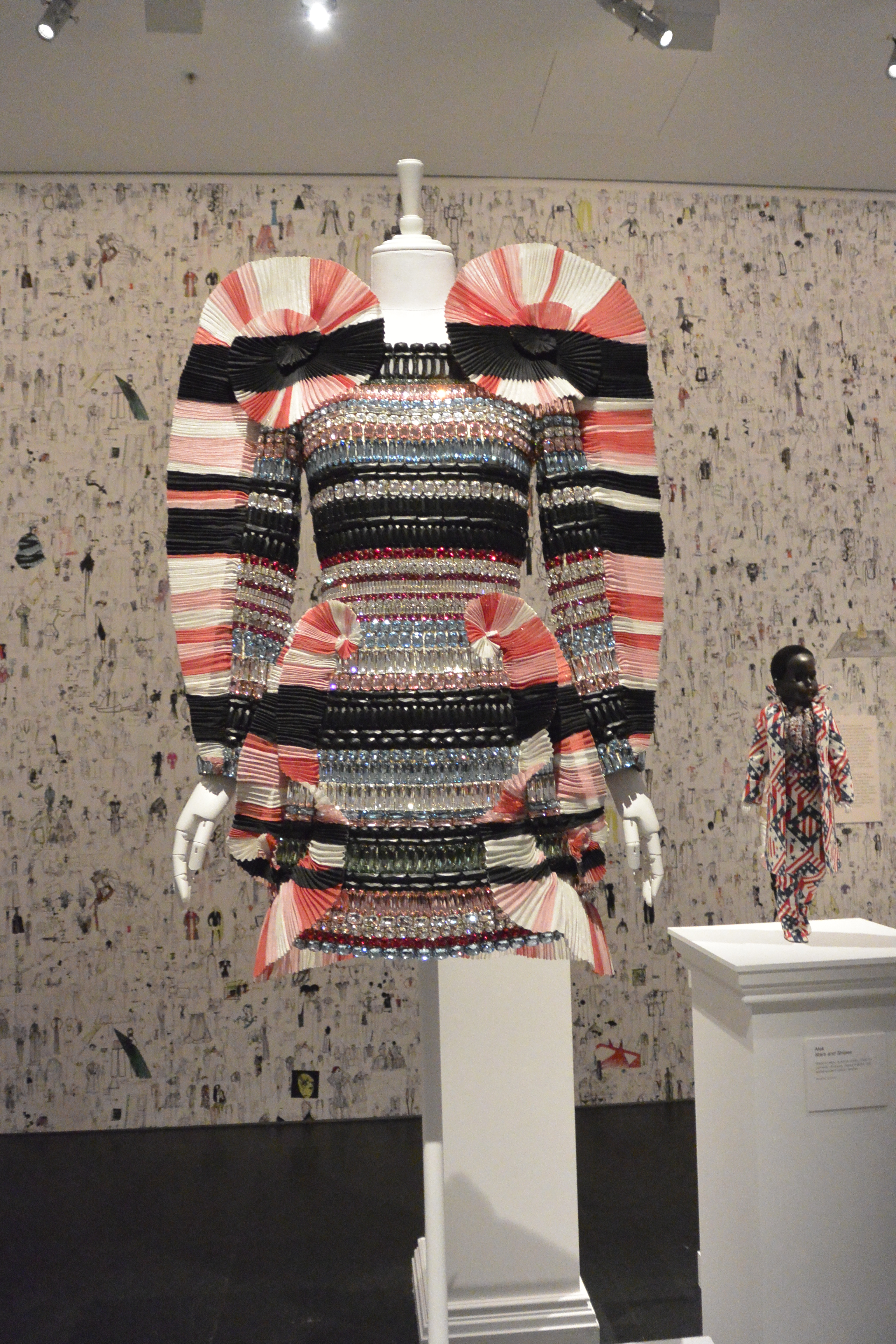I didn’t do a thorough look at the whole exhibition but there is certainly plenty to see, such as this crystal encrusted dress defined with finely pleated frills and this amusing (and technically impressive) Swiss cheese ballgown.