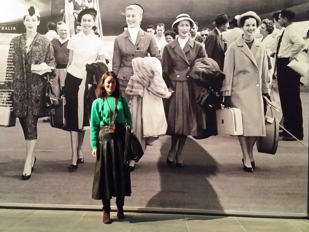 Here’s me trying to look even 1% as chic as some models arriving in Sydney for a showing in 1957 (and failing miserably!).