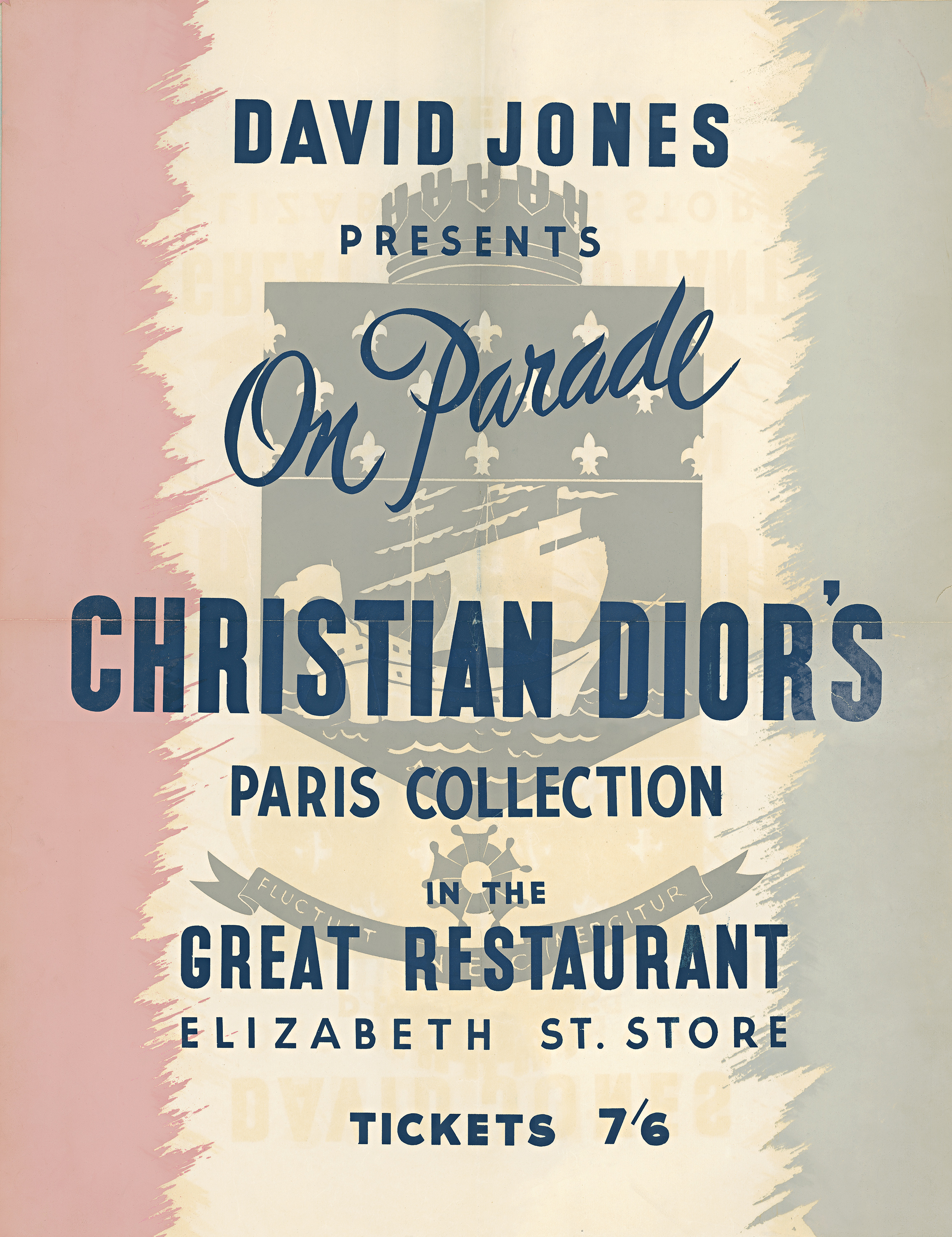 Apart from the couture creations themselves, there are sketches and ephemera from the Dior show that was staged at David Jones, Sydney, in 1948 – yes, somewhat hard to believe, but Dior chose to show a complete collection all the way out here in Australia just a year after launching his brand.