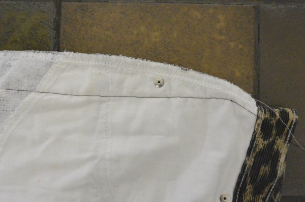 Although they were several sizes too big, the fact that they are printed corduroy (extra texture!) and their loose-ish fit won me over (too-tight animal print has too many connotations for my liking). If I wore them as hip-hangers, all I had to do was take them in at the sides, like so…