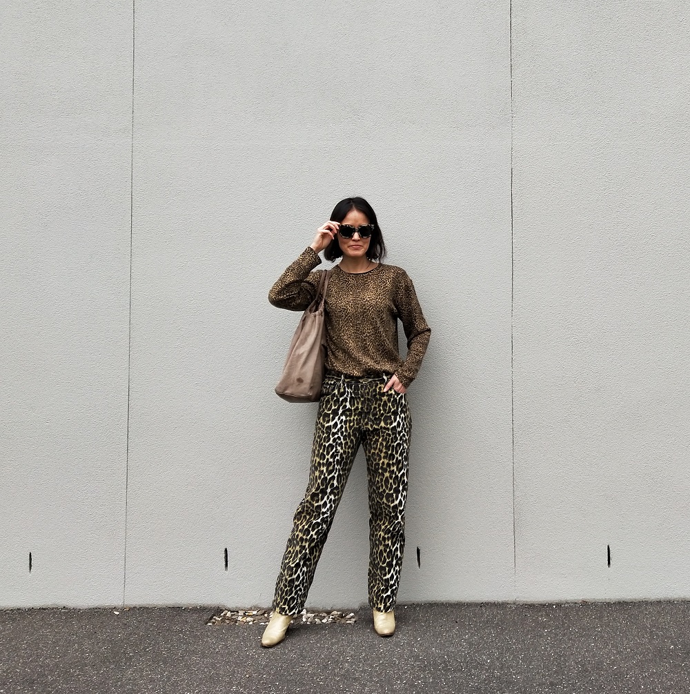 And then all I had to do was team them with an animal print jumper and tortoiseshell frame sunnies. Weirdly, this outfit might feel very out-there to some people but to me it’s like my new neutral. It’s even a bit camouflage-y… see? Just like a leopard in the undergrowth, I’m totally hidden in the urban jungle.